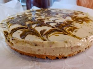 Questa versione della mia Cheesecake è stata poi aromatizzata con la crema di pistacchio.