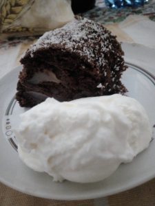 Togliere quindi la torta dallo stampo e spolverizzare con polvere di cocco.