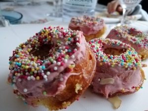 Ho realizzato delle ciambelline che poi ho glassato con il cioccolato bianco colorato.