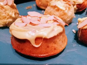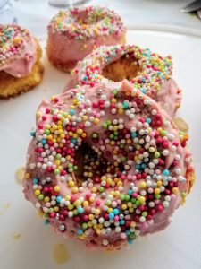 Ho realizzato delle ciambelline che poi ho glassato con il cioccolato bianco colorato.