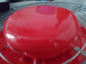 Portare la glassa alla temperatura di 35 gradi e versarla sulle tortine dì Namelaka .