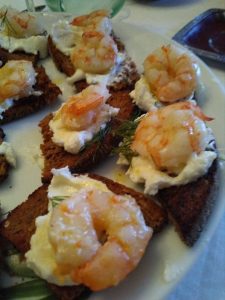 Pane ai 5 cereali, gamberi e una soffice crema di formaggio per un finger davvero raffinato.