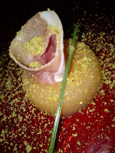Un tocco.di colore infine è dato dalla granella di pistacchio e dal filo di erba cipollina che completano il piatto.