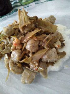 In una domenica di maggio piovosa e ventosa ho preparato questi gnocchetti dal sapore rustico, che ho poi aservito con un sugo a base di carciofi.