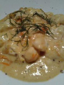 Scolare i gnocchetti e versarli sulla salsa all’arancia.