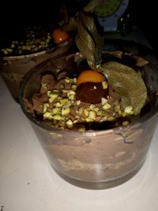 Completare con la granella di pistacchio e con un frutto di alchechenjo .