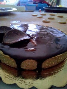 Ttascorso questo tempo versare il nappage sulla torta. lasciandolo colare sui bordi, ultimare le crostate  completare con decorazioni di cioccolato