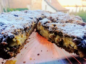 Infatti in origine si utilizzava il pane raffermo on cui si rivestiva una tortiera che poi si farciva con le fette di mela e si faceva cuocere in forno.