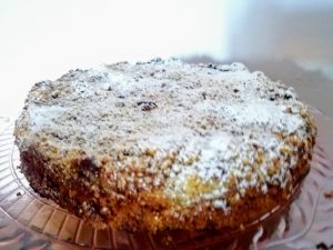 Sfornare la torna,lasciarla raffreddare e spolverizzarla con lo zucchero a velo.