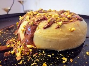 Per gli amanti del semifredfo una versione molto particolare con la nota intensa del pistacchio e il sapore avvolgente del cioccolato giunduja. Un dolce molto goloso che però si può consumare tranquillamente anche d’estate .
