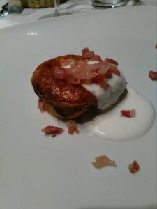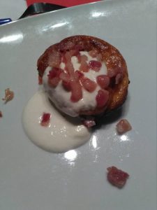 In questa ricetta ho utilizzato il topinambur per lo sformatino, mentre ho optato per un formaggio dal gusto un po’ più acidulo, come il caprino e ho completato poi il piatto con della pancetta appena rosolata in padella.
