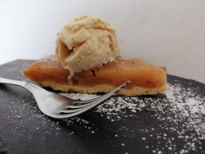 Ho servito la torta con un gelato alla crema aromatizzato alla cannella, che si sposa perfettamente con la mela.