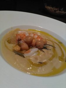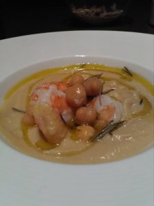 Il sapore delicato dei ceci, con il sapore intenso dei gamberi, e la nota aromatica del rosmarino.